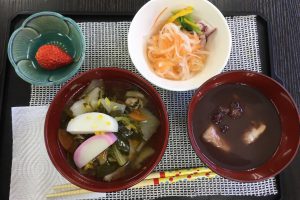 今日のメニューは理事長特製の「ひき肉のカレー」、万年青年さんの「ポテトサラダ」、パパさんの「お豆腐とわかめのおみそ汁」でした。