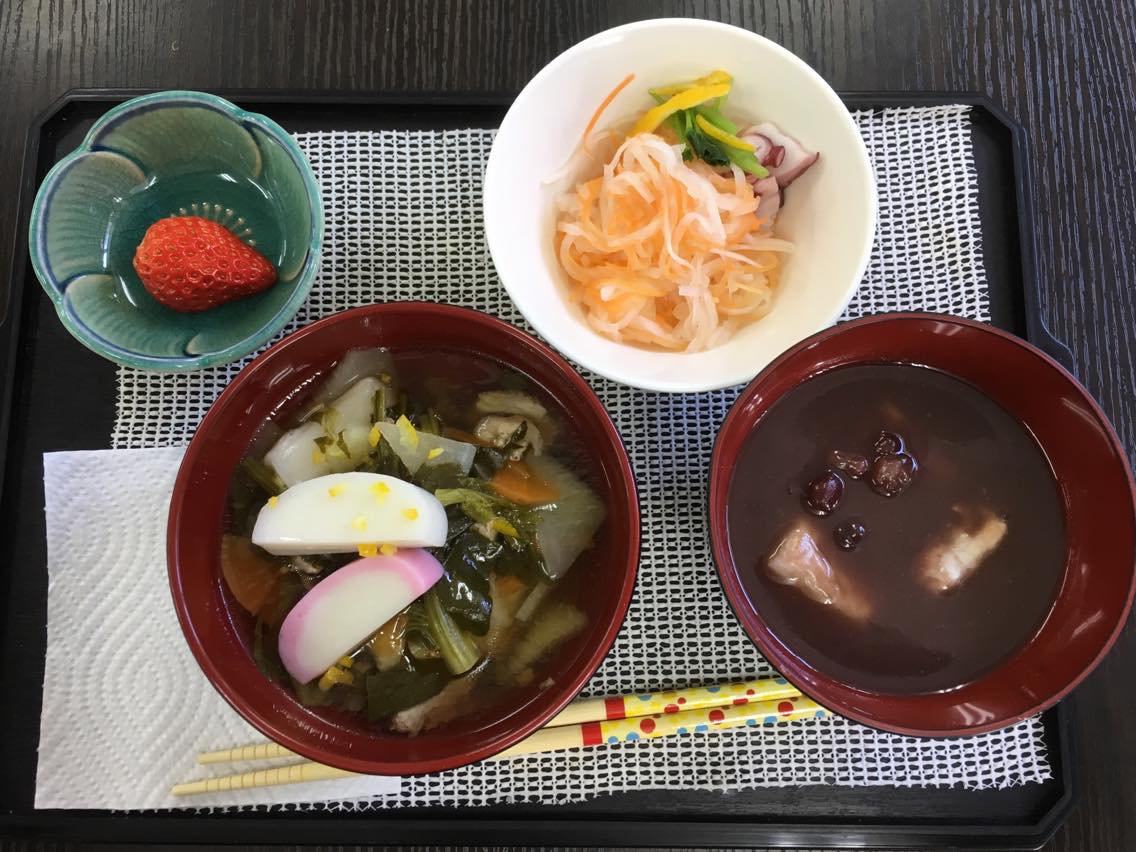 さて、そんな年初めのメニューは、恒例の「お雑煮、紅白なます、お汁粉」でした。